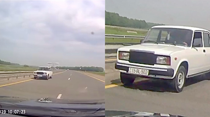 Kadrlardan aydın olur ki, 15-BL-502 dövlət nömrə nişanlı “VAZ-2107” markalı avtomobilin sürücüsü əks istiqamətli yola çıxaraq bu vəziyyətdə hərəkətini davam etdirib. Nəticədə o, qarşıdan gələn nəqliyyat vasitəsi üçün qəza şəraiti yaradıb. Şikayətçinin sözlərinə görə, o, son anda sağa manevr edərək baş verə biləcək ağır yol-nəqliyyat hadisəsinin qarşısını alıb (Avtosfer.az).